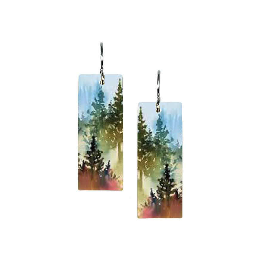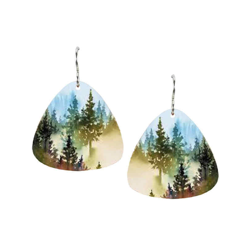 Dreamy Twiglight Vista Forest Scene - 2 Styles Available Rounded Edge Triangle Earrings or Rectangle Earrings