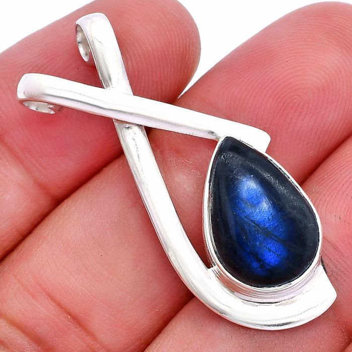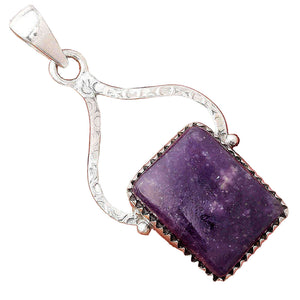 Blue Flower Rectangle Silver Patina Dangle Earrings