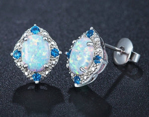 Earrings Triangle Silver Opal Crystal Stud