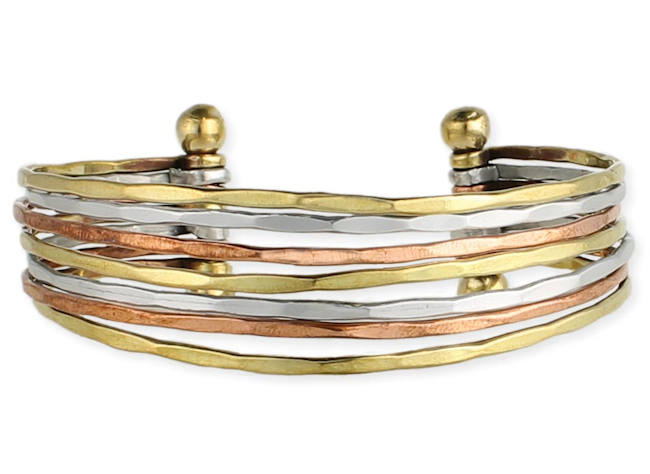 Hammered Cuff Bracelet Mixed Metals