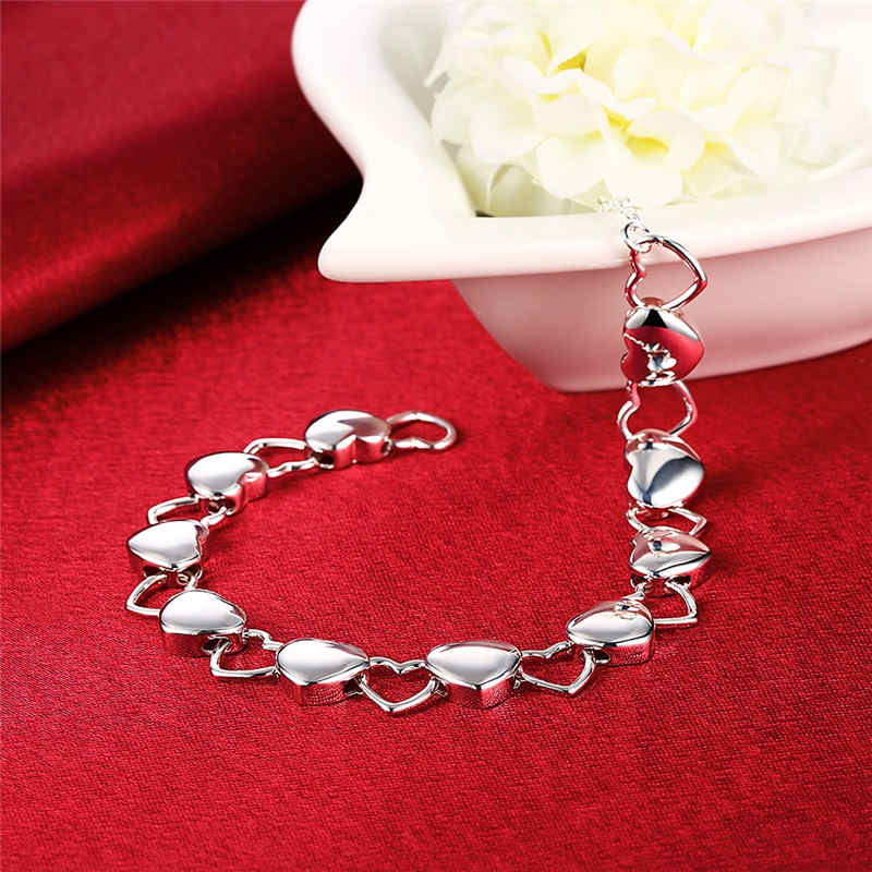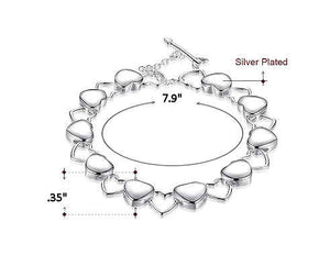 This Silver plated Heart Bracelet has Solid Hearts and Hollow Hearts with a Locking Arrow