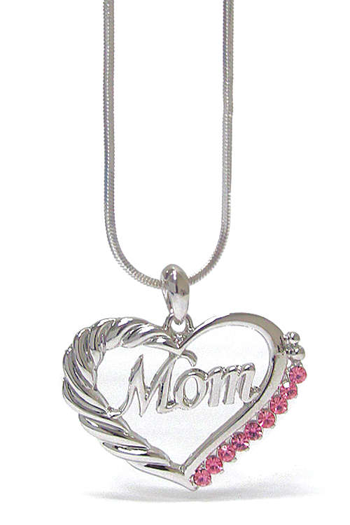 Whitegold plated Crystal Mom Heart Pendant Necklace
