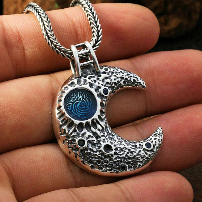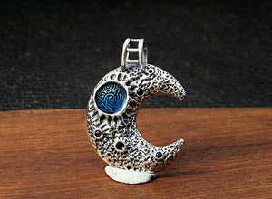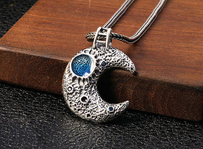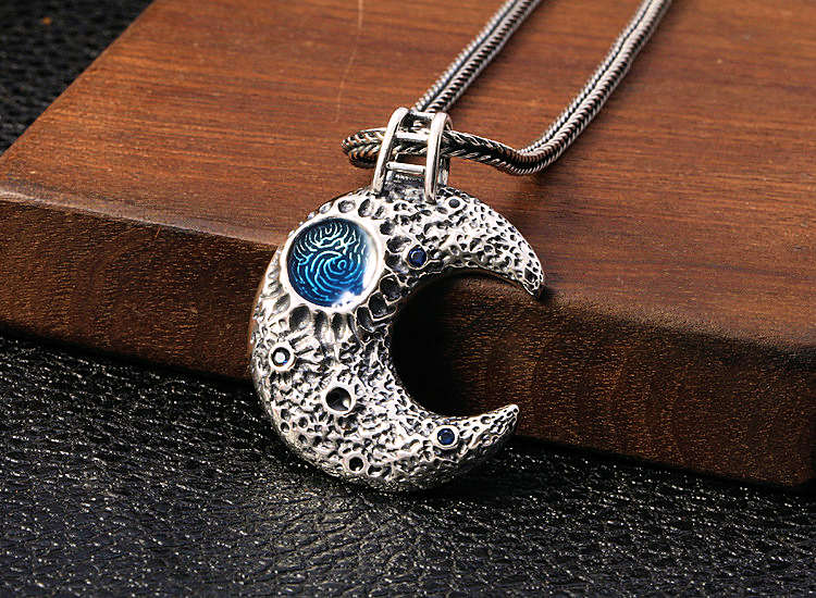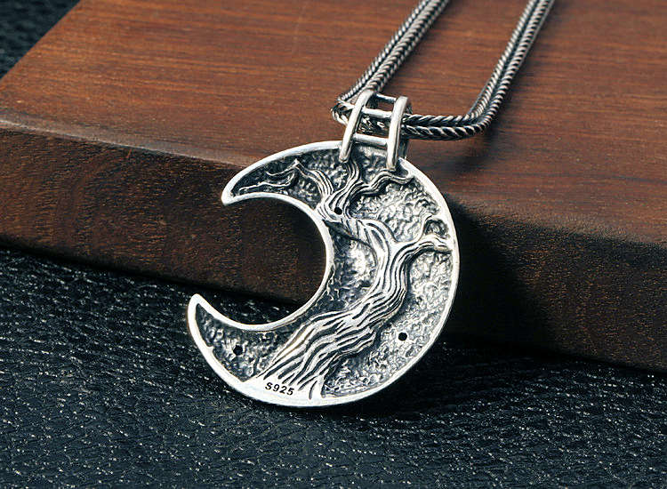 Unisex Moon Lovers Pendant Necklace .925 Sterling Silver with an Antique Style Look