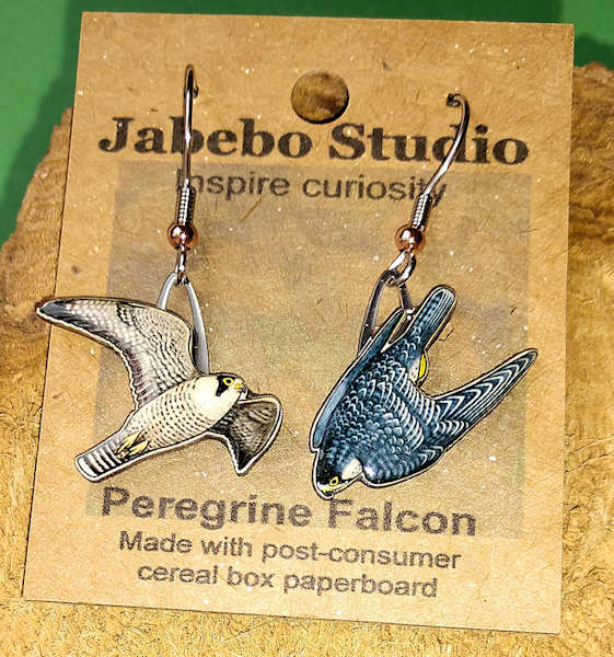 One Earring is a Peregrine Falcon in flight and the other it is in a stoop diving.