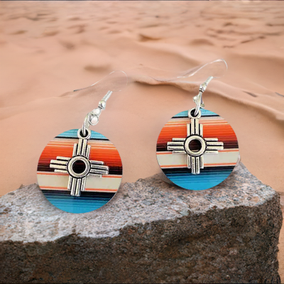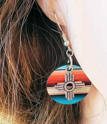 Zia New Mexico Earring, Natural Print Serape, Lightweight Earring. Cute and small earring, perfect size, but big enough to make a fashion statement.