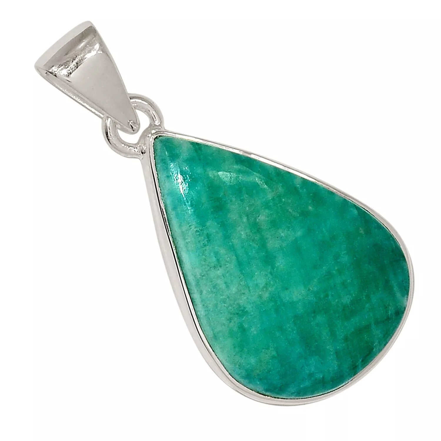 This Peruvian Amazonite Pendant is set in .925 Sterling Silver.