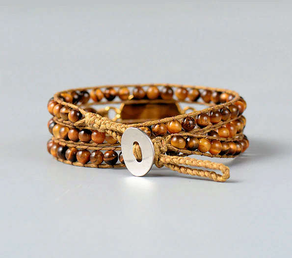Wear the protection of Tiger Eye on your arm - Three Strands of Tiger Eye on this Handmade Bracelet