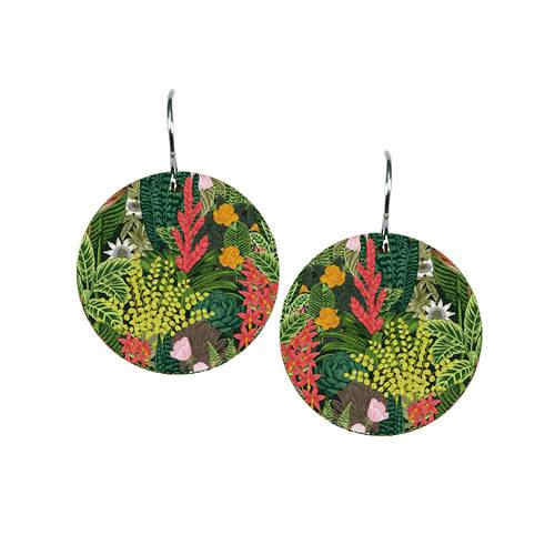 Beautiful Tropical Color with these Flora and Fauna disk Earrings.   Lightweight, high definition color-infused aluminum earrings. Scratch resistant and waterproof.