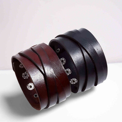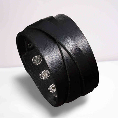 Leather Wrist Cuff - Wide Three rows of Snaps for Adjustable sizes Material: Leather 9" long X 1.6" wide (approx) Unisex...