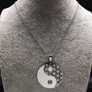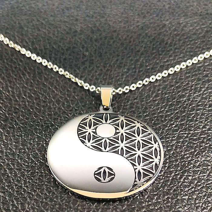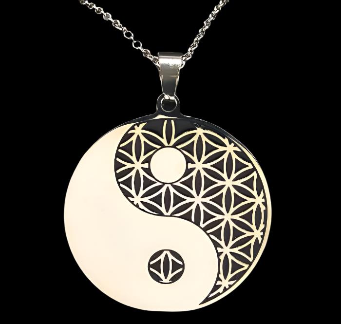 Stainless Steel Unusual Yin Yang Design with Flower of Life Background Texture